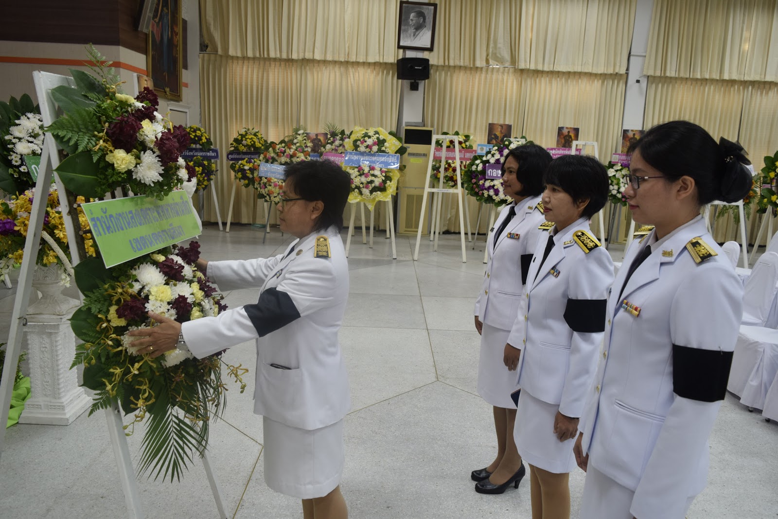 เมื่่อ ๒๕ เม.ย. ๖๐ นางสุพรรณ พันธุ์พยัคฆ์ รอง หส.ผศ.น.ม. พร้อมคณะ ร่วมพิธีวางพวงมาลาถวาย